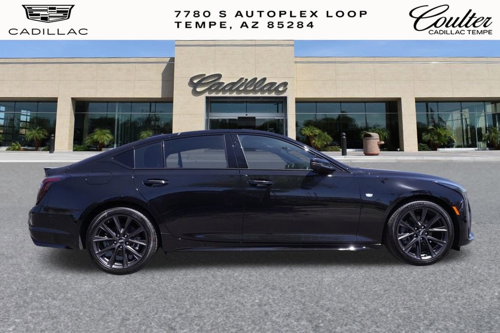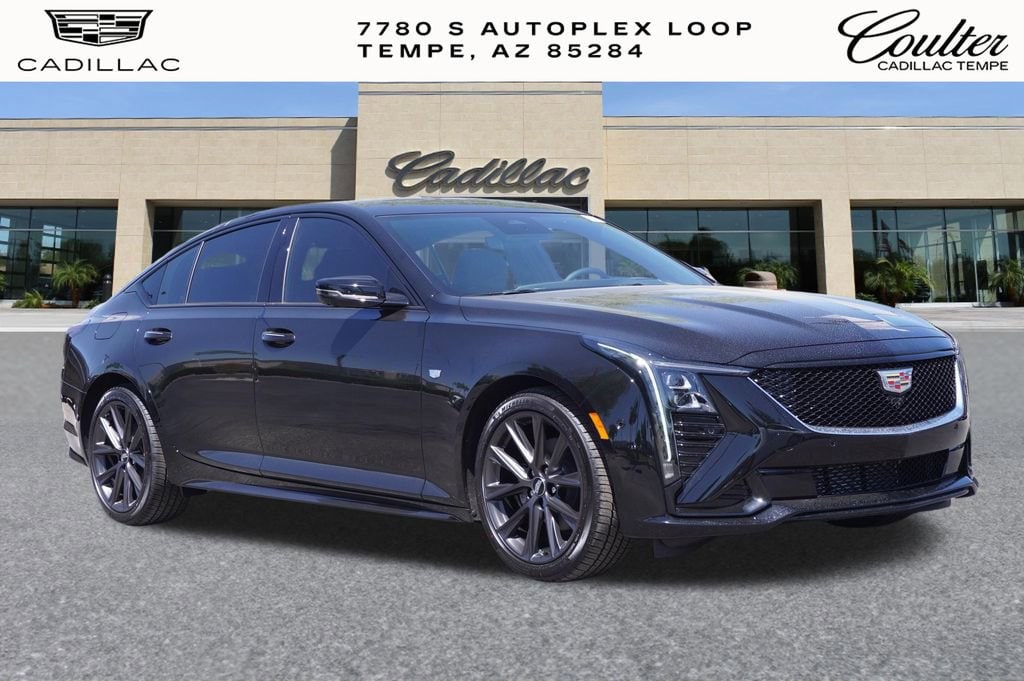 Experience The Difference At Coulter Tempe. Tempe Autoplex - i-10 and Elliot Road. Proud to be part of the Coulter Automotive Group - serving Phoenix since 1923. The Cadillac CT5 is equipped with Technology Package (Adaptive Forward Lighting Headlamps, Air Quality Indicator Sensor, Automatic Leveling System Headlamp Control, Body-Color Heated Power-Adjustable Outside Mirrors, Digital Rear Camera Mirror w/Tilt & Zoom Function, Front Cornering LED Lamps, Hands-Free Decklid Release, Head-Up Display, Illuminating Door Handles, Illuminating Front Sill Plates, Pollutant/Odor/Fine Dust Air Filter, and Premium Headlamp System), 15 Speakers, 4-Wheel Disc Brakes, 8-Way Power Driver Seat Adjuster, 8-Way Power Front Passenger Seat Adjuster, ABS brakes, Air Conditioning, AKG 15-Speaker System, Alloy wheels, AM/FM radio: SiriusXM with 360L, Apple CarPlay/Android Auto, Auto High-beam Headlights, Auto-dimming door mirrors, Auto-dimming Rear-View mirror, Automatic Stop/Start w/Disable, Automatic temperature control, Brake assist, Bumpers: body-color, Compass, Delay-off headlights, Driver 4-Way Power Lumbar Seat Adjuster, Driver door bin, Driver Manual Cushion Length Adjustment Seat, Driver Power Lumbar Massage Seat, Driver Power Seatback Bolster Adjustment, Driver vanity mirror, Dual front impact airbags, Dual front side impact airbags, Electronic Stability Control, Emergency communication system: OnStar and Cadillac connected services capable, Exterior Parking Camera Rear, Four wheel independent suspension, Front anti-roll bar, Front Bucket Seats, Front Center Armrest, Front dual zone A/C, Front Passenger 4-Way Power Lumbar Seat Adjuster, Front Passenger Manual Cushion Length Adjustment, Front Passenger Power Lumbar Massage Seat, Front Passenger Power Seatback Bolster Adjustment, Front reading lights, Fully automatic headlights, Garage door transmitter, Heated door mirrors, Heated Driver & Front Passenger Seats, Heated front seats, Heated steering wheel, Illuminated entry, Inteluxe Seating Surfaces, Knee airbag, Leather steering wheel, Low tire pressure warning, Memory seat, Navigation System, Occupant sensing airbag, Outside temperature display, Overhead airbag, Overhead console, Panic alarm, Passenger door bin, Passenger vanity mirror, Power door mirrors, Power driver seat, Power passenger seat, Power steering, Power windows, Radio data system, Radio: Google Built-In Infotainment Experience, Rain sensing wipers, Rear anti-roll bar, Rear reading lights, Rear seat center armrest, Rear window defroster, Remote keyless entry, SiriusXM w/360L Trial Subscription, Speed control, Speed-sensing steering, Split folding rear seat, Spoiler, Steering wheel memory, Steering wheel mounted audio controls, Tachometer, Telescoping steering wheel, Tilt steering wheel, Traction control, Trip computer, Turn signal indicator mirrors, Variably intermittent wipers, Ventilated Driver & Front Passenger Seats, Voltmeter, Wheels: 19 Alloy w/Pearl Nickel Finish, and Wheels: 19 Alloy w/Satin Graphite Finish. Black Raven 2026 Cadillac CT5 Sport RWD 10-Speed Automatic 2.0L I4 Turbocharged DOHC 16V LEV3-SULEV30 237hp