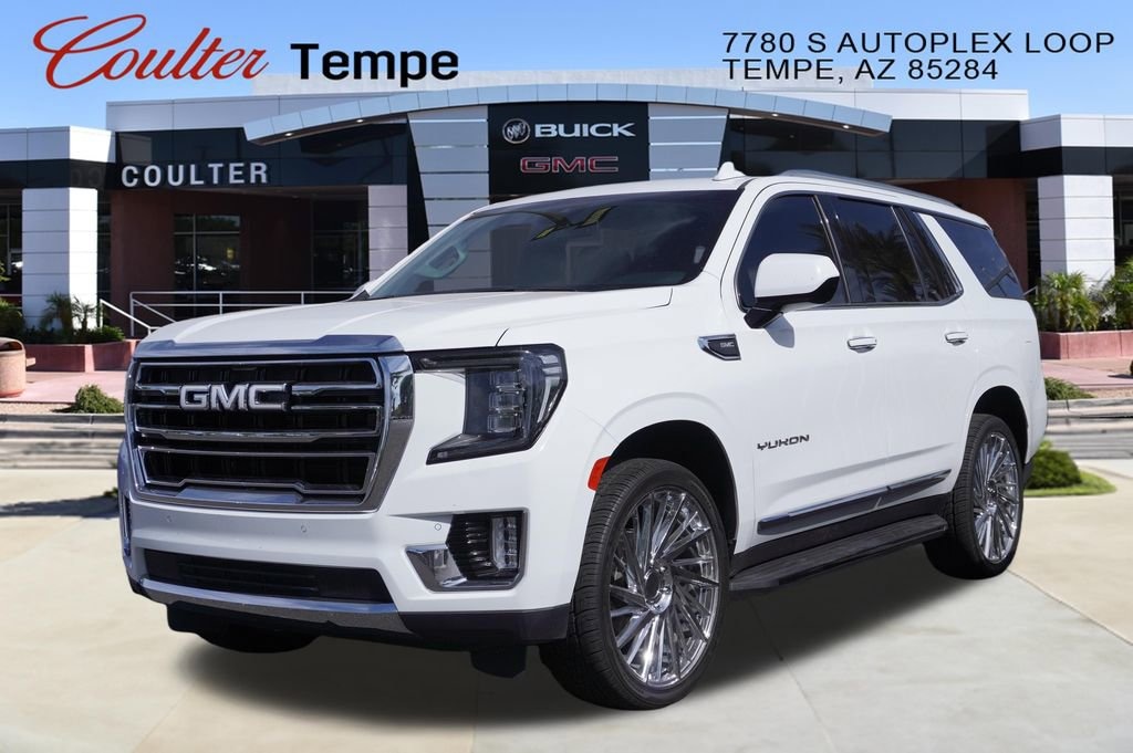 Summit White 2023 GMC Yukon SLT RWD 10-Speed Automatic with Overdrive EcoTec3 5.3L V8 Coulter Tempe iis part of the Coulter Automotive family who has sold and serviced vehicles in Arizona since 1923. Experience The Difference.